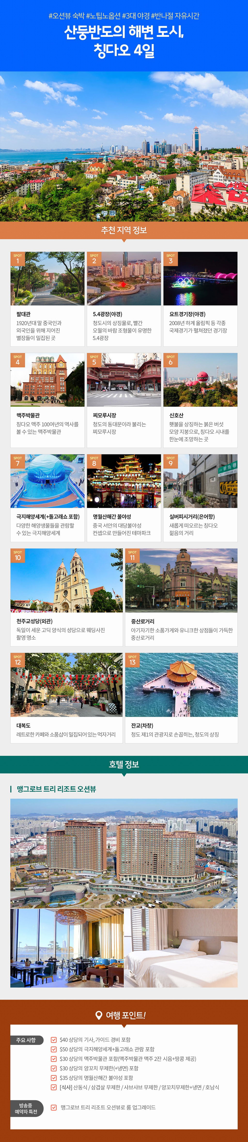 [쇼핑엔티] 칭다오 4일 #노팁노옵션 #맹그로브리조트오션뷰 #반나절자유시간