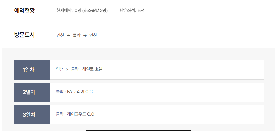 ※ 본 여행상품의 숙박시설 및 골프장은 현재 미정이며, 출발 2일 전까지 안내드립니다.